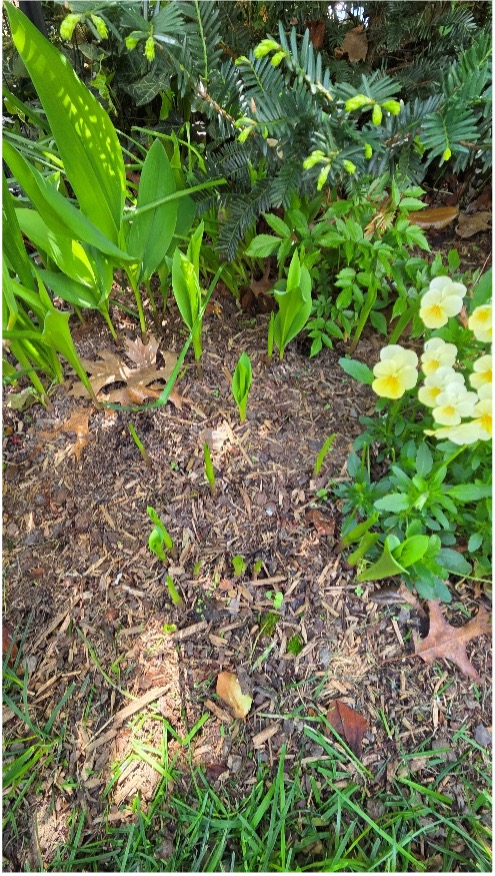 This is the moment to move with care and caution through planting beds. To take an extra second before stepping in — wiggle the tip of your foot around to find a clear spot and feel through your sole that you are in the right spot. Try to remember where things live, and where they are about to. And listen for screams.
