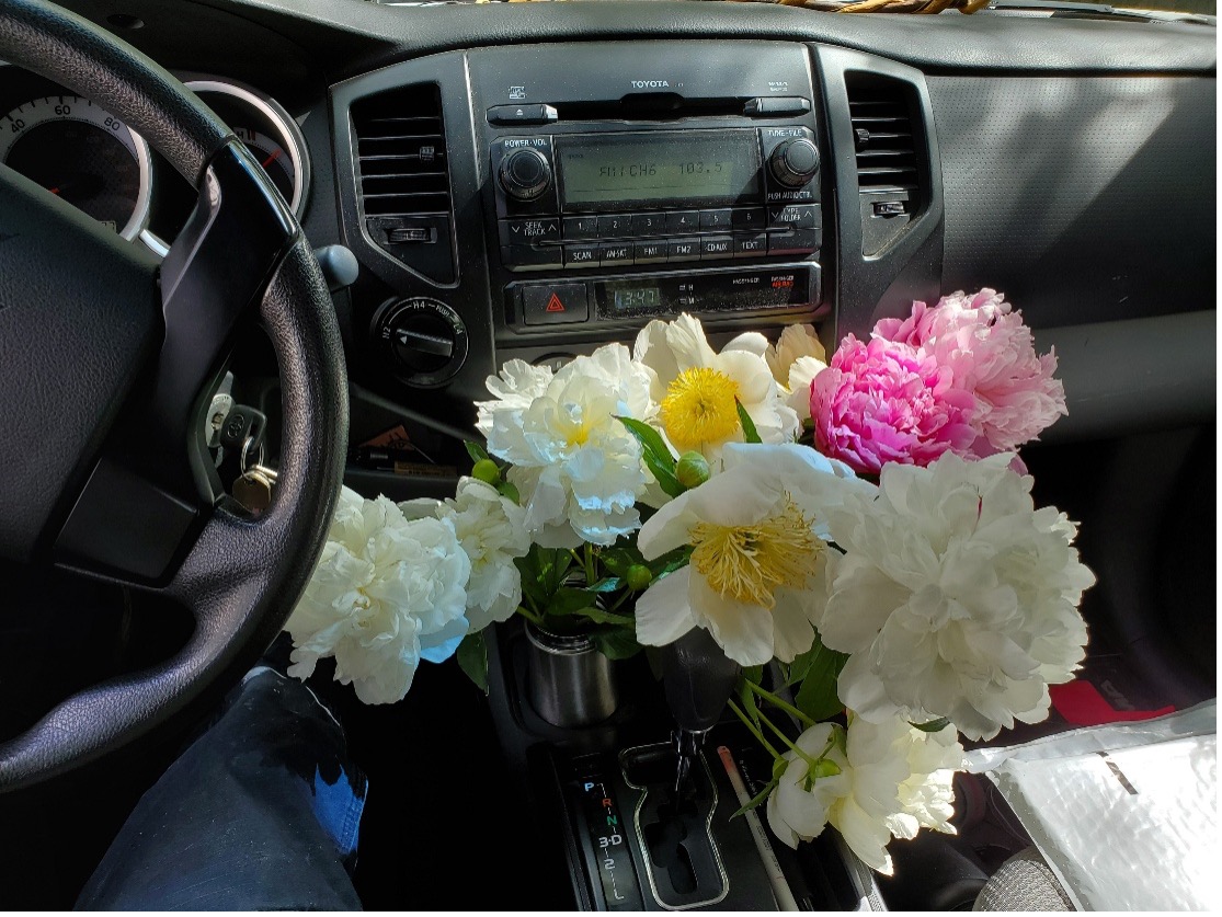 What I want to talk about today, though, are herbaceous peonies, like the ones in the first picture pilfered from one of the gardens and on the way home in my truck. These are our long-loved, long-living, reliable late-spring bloomers. I think of them as among the most nostalgic of perennials.