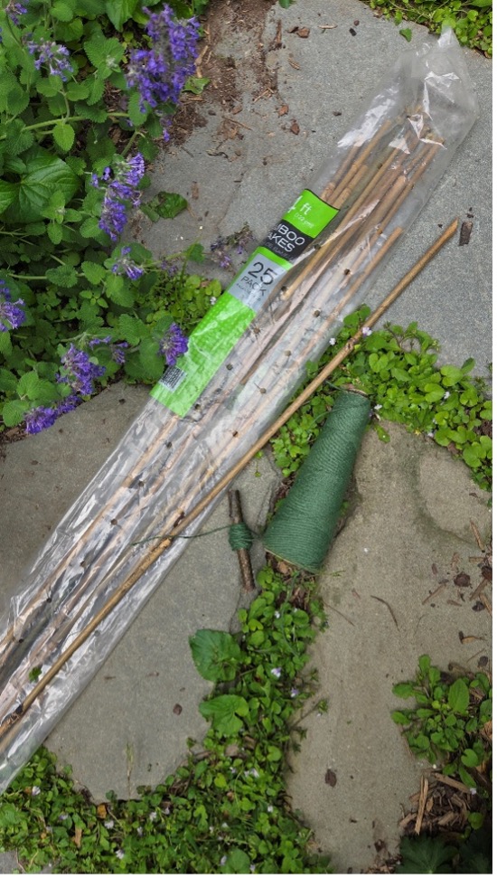 A good number of tall (about 4') green bamboo stakes — usually available at any hardware store or garden center.